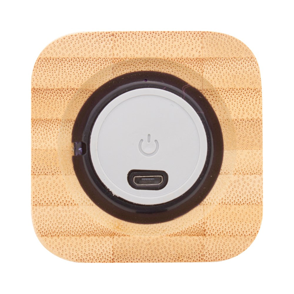 Bluetooth zvočnik, bambus, prostoročni klici, Li-ION baterije priložene, USB kabel, 60x60x58mm, kartonska škatla