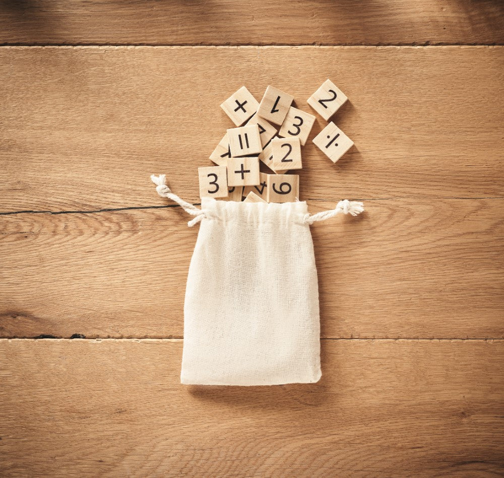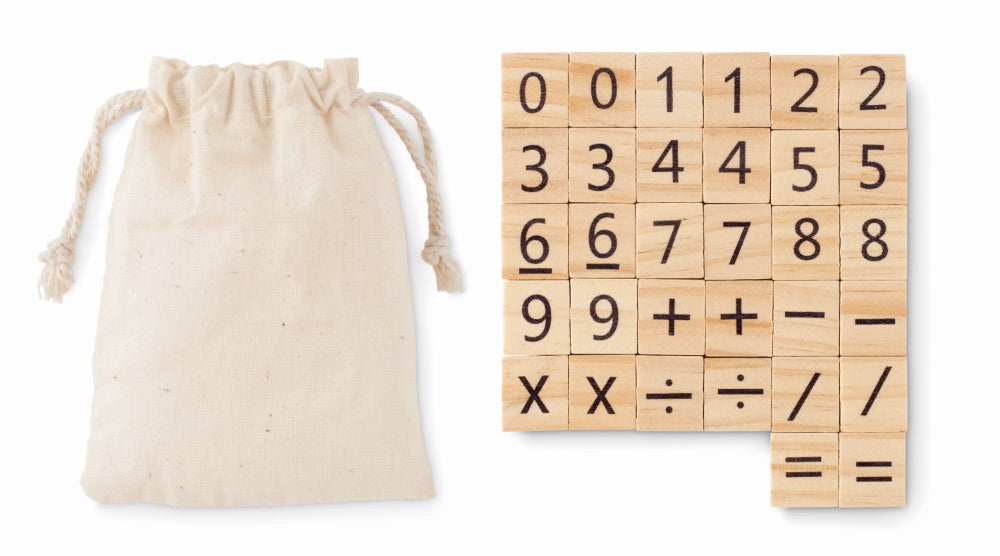 Lesena igra za računanje - 32 kosov, v bombažni vrečki: 95x95mm