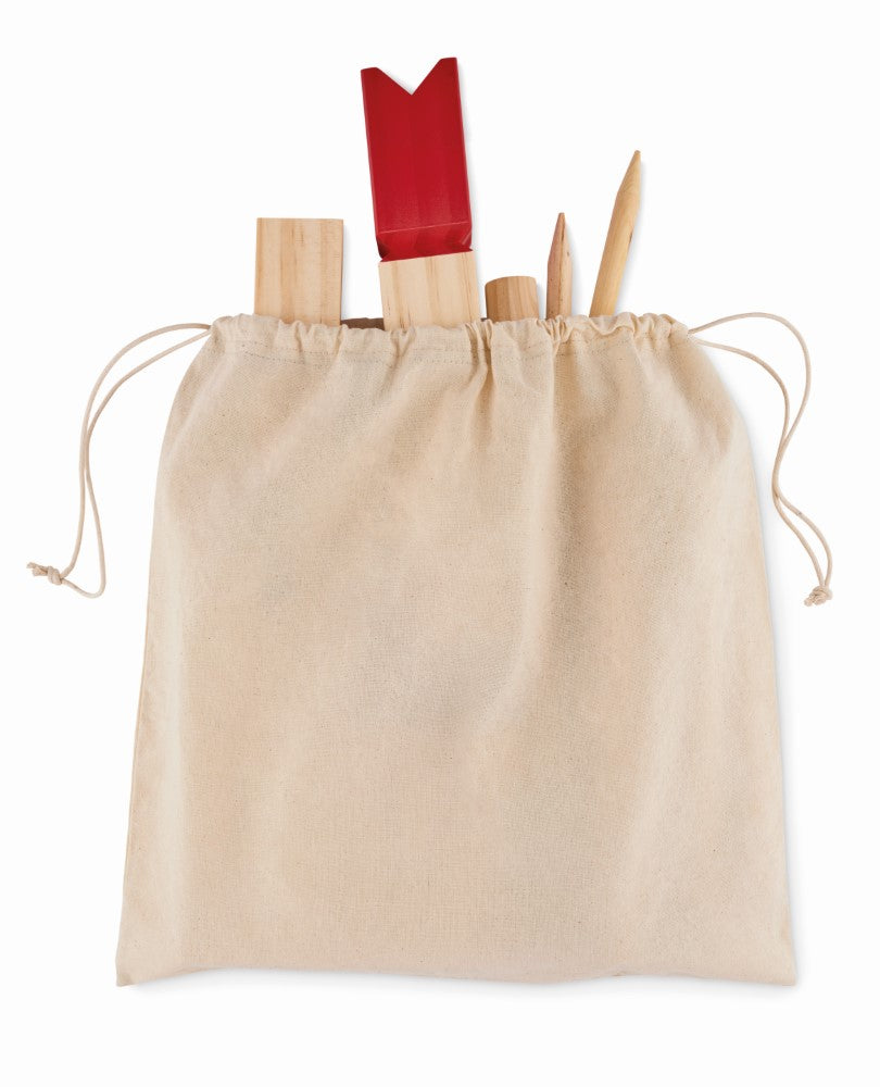Igra Kralj, palice iz borovega lesa,10 kratkih kvadratnih, 4 koničaste, 6 okroglih in 1 palica kralj, v bombažni vreči, 343x340mm