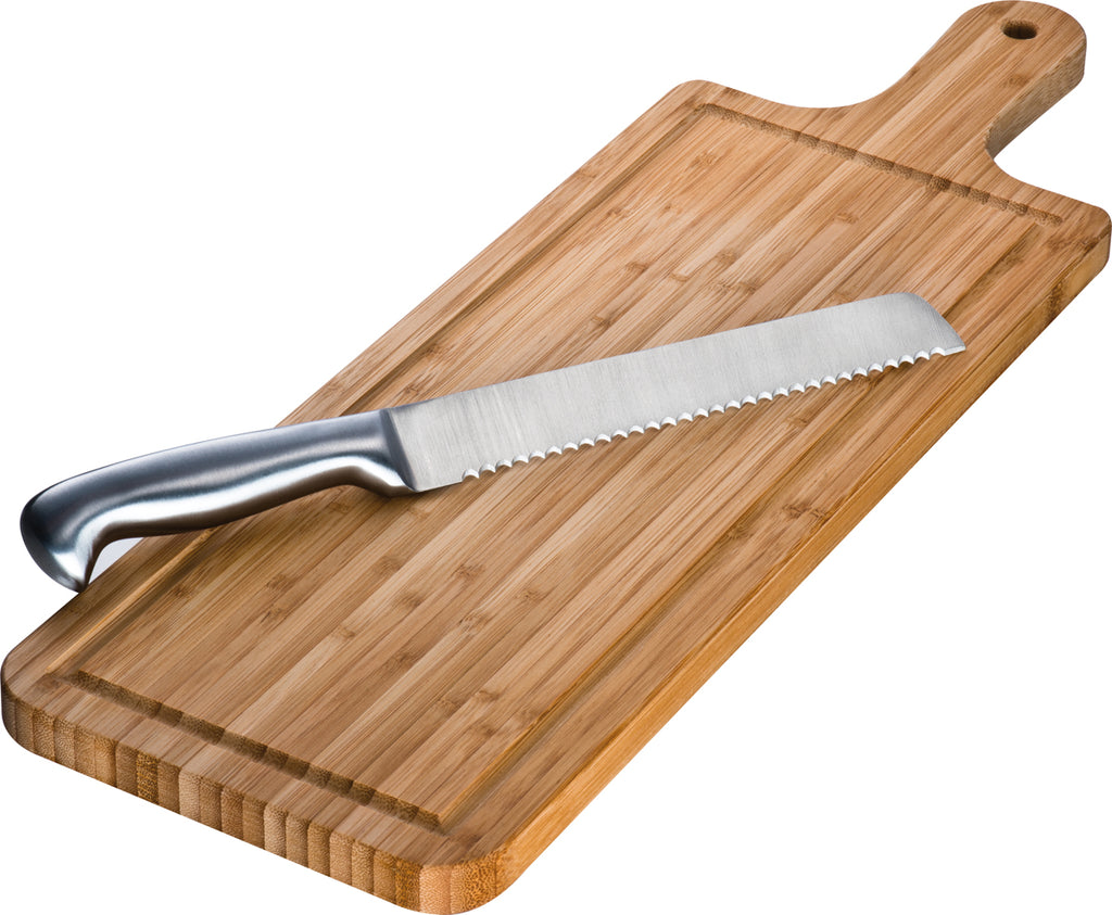 Velika rezalna deska 580x180x20mm, bambus, kuhinjski nož, nerjaveče jeklo, kartonska škatla