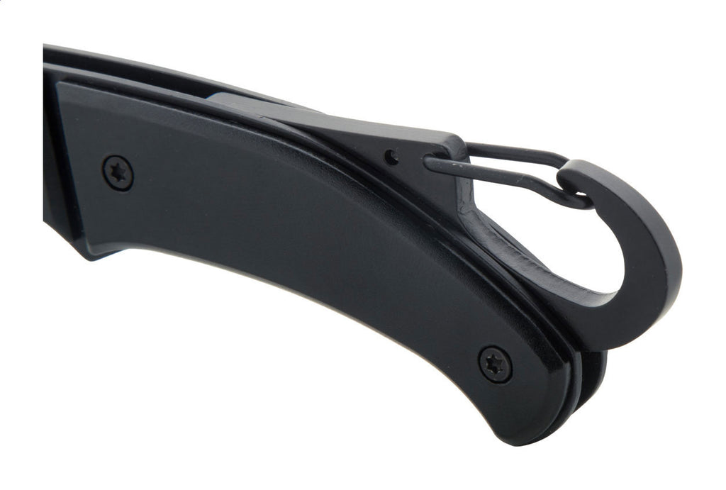 Žepni nož, črn, nerjaveče jeklo, varno zapiranje, karabin za obešanje, 32x102x13mm