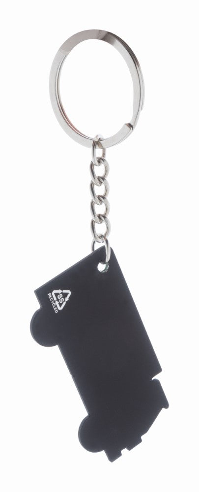 Obesek za ključe-kamion, reciklirano nerjaveče jeklo, črno gumirano, 55x30x2mm, možna sijoča gravura
