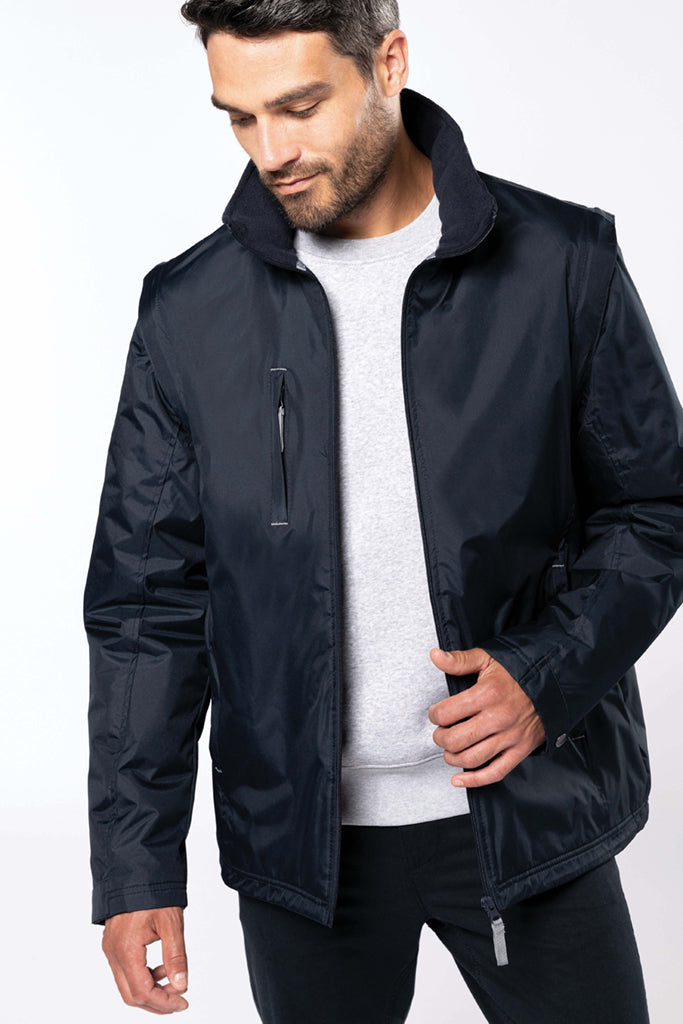Moška zimska jakna, 100% poliester s PVC premazom, 475g/m2, funkcionalna jakna, snemljivi rokavi, dvobarvna, trije zunanji in trije notranji žepi