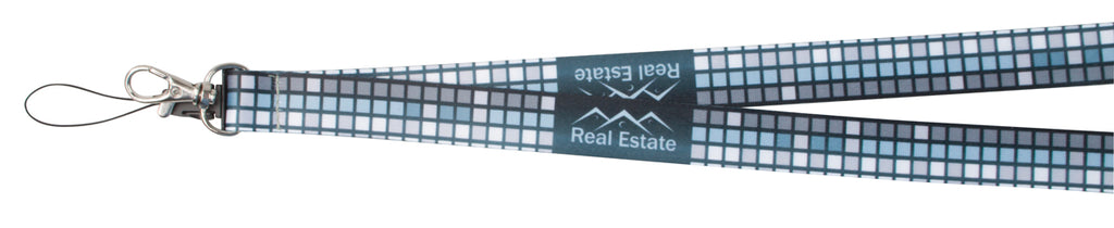 Ovratni trak z večbarvnim sublimacijskim tiskom na obe strani, tisk vračunan v ceni, minimalna količina 100 kosov, poliester, s kovinskim karabinom in vrvico, 2 opcije širine traku (15 ali 20 mm)