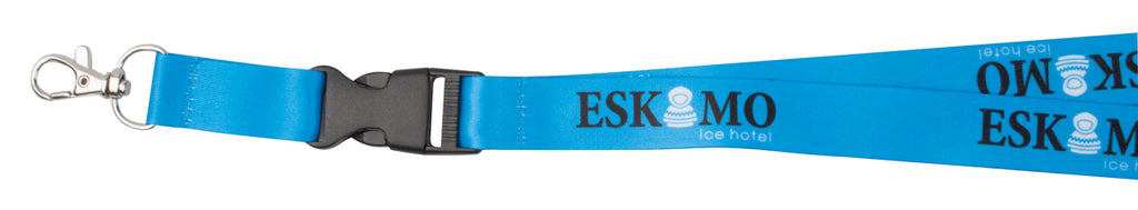 Ovratni trak z večbarvnim sublimacijskim tiskom na obe strani, tisk vračunan v ceni, minimalna količina 100 kosov, poliester, s snemljivim kovinskim karabinom, 2 opciji širine traku (15 ali 20 mm)