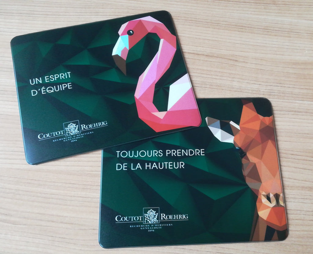 Podloga za optično miško, vrhunska kvaliteta izdelave, ki je prirejena posebno za optične miške. Zgornji del iz posebne PVC folije, debeline 0,3mm. Spodnji del iz svetlo sive nedrseče PVC pene, debeline 1,2mm. Možnost izbire treh oblik: kvadrat, krog ali pravokotnik. Minimalno naročilo je 50 kos. Večbarvni tisk (CMYK) že vključen v ceno. Cena je odvisna od količine, zato nam jo sporočite, mi pa vam pošljemo ponudbo.