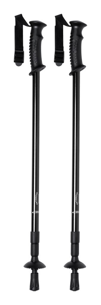 Par zložljivih pohodniških palic, z vzmetnimi blažilci, ergonomski oprijem, nastavljivi od 60 do135cm, črna nosilna torbica