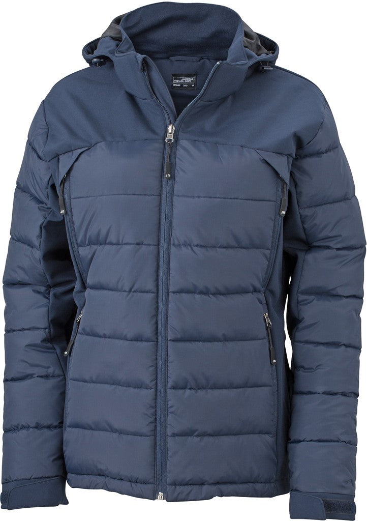 Ženska zimska jakna, 95% poliester in 5% elastan, zunanjost: 100% poliamid in notranjost: 100% poliester, odporna na veter, nepremočljiva tkanina, 4 zunanji in 1 notranji žep, pokrivalo za brado, snemljiva kapuca, telirana