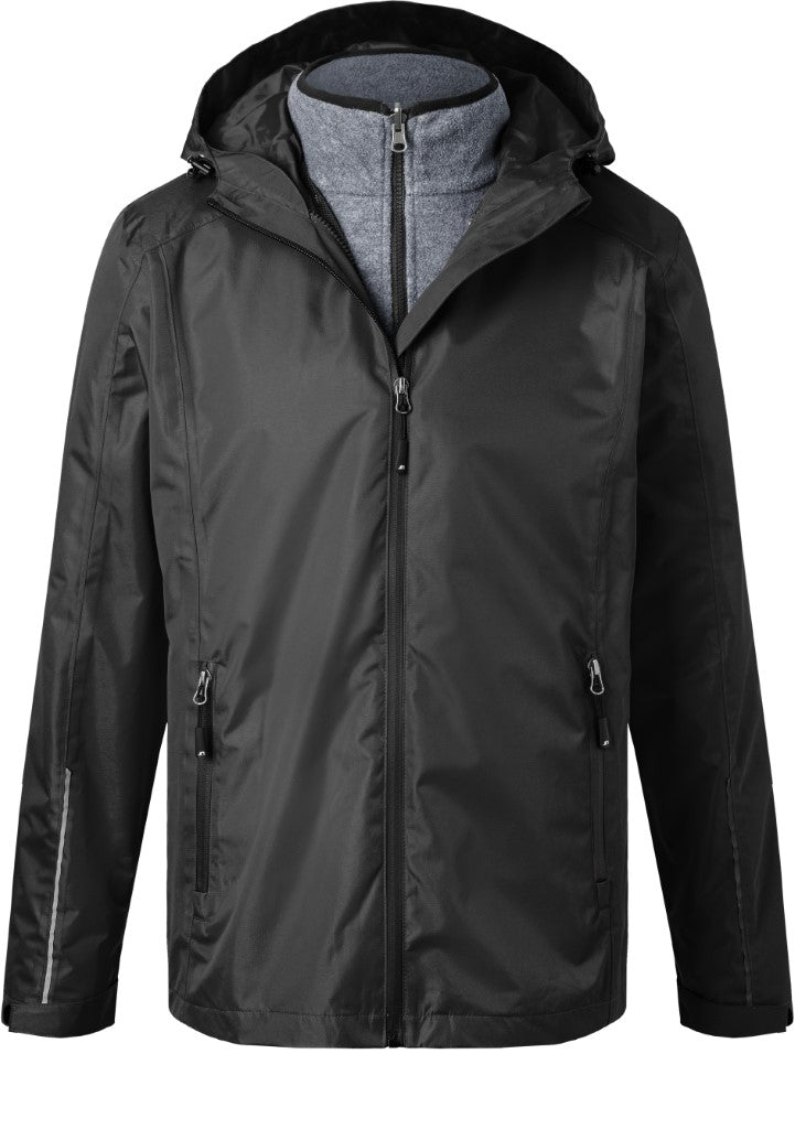 Moška zimska jakna, 100% poliester, notranja jakna: 100% poliester (flis), zunanja jakna vodoodporna (vodni stolpec: 5.000mm) in zračna (5.000g/m2 v 24h), kapuca, vsi žepi z zadrgami so vodoodporni