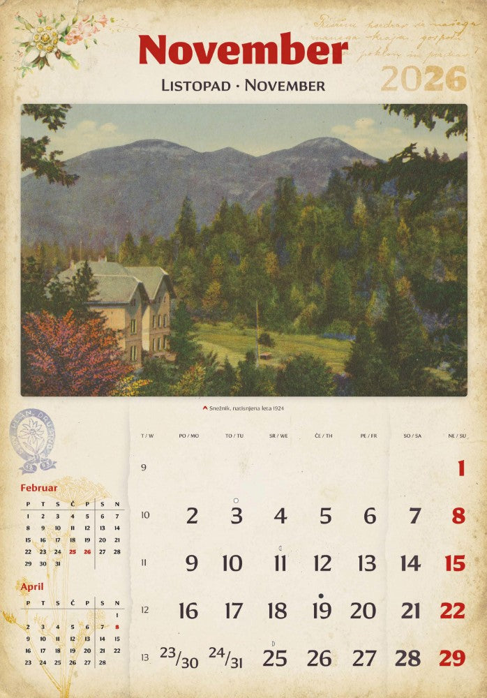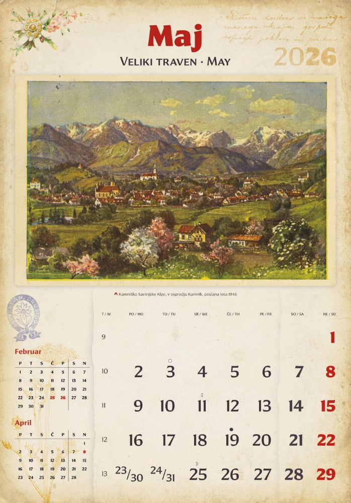 Koledar – Gore in ljudje, špiralna vezava, 335x475mm, papirnata vrečka