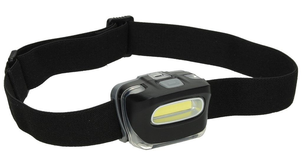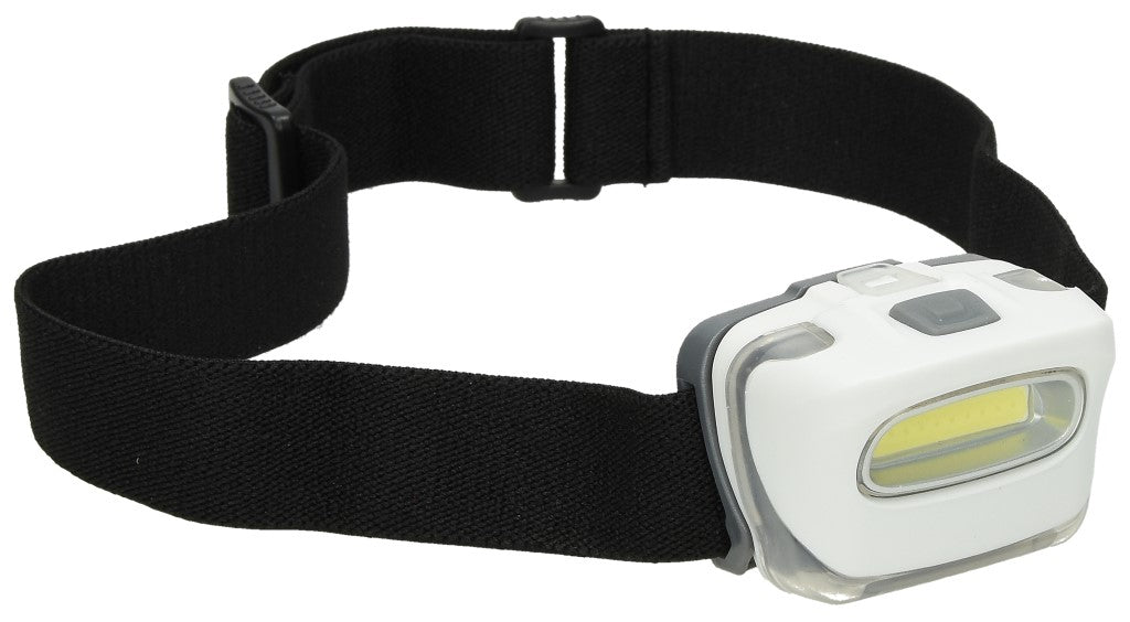 Naglavna svetilka LED, 5W, ohišje plastika, elastični trak, baterije priložene, kartonska škatla: 75x65x55mm