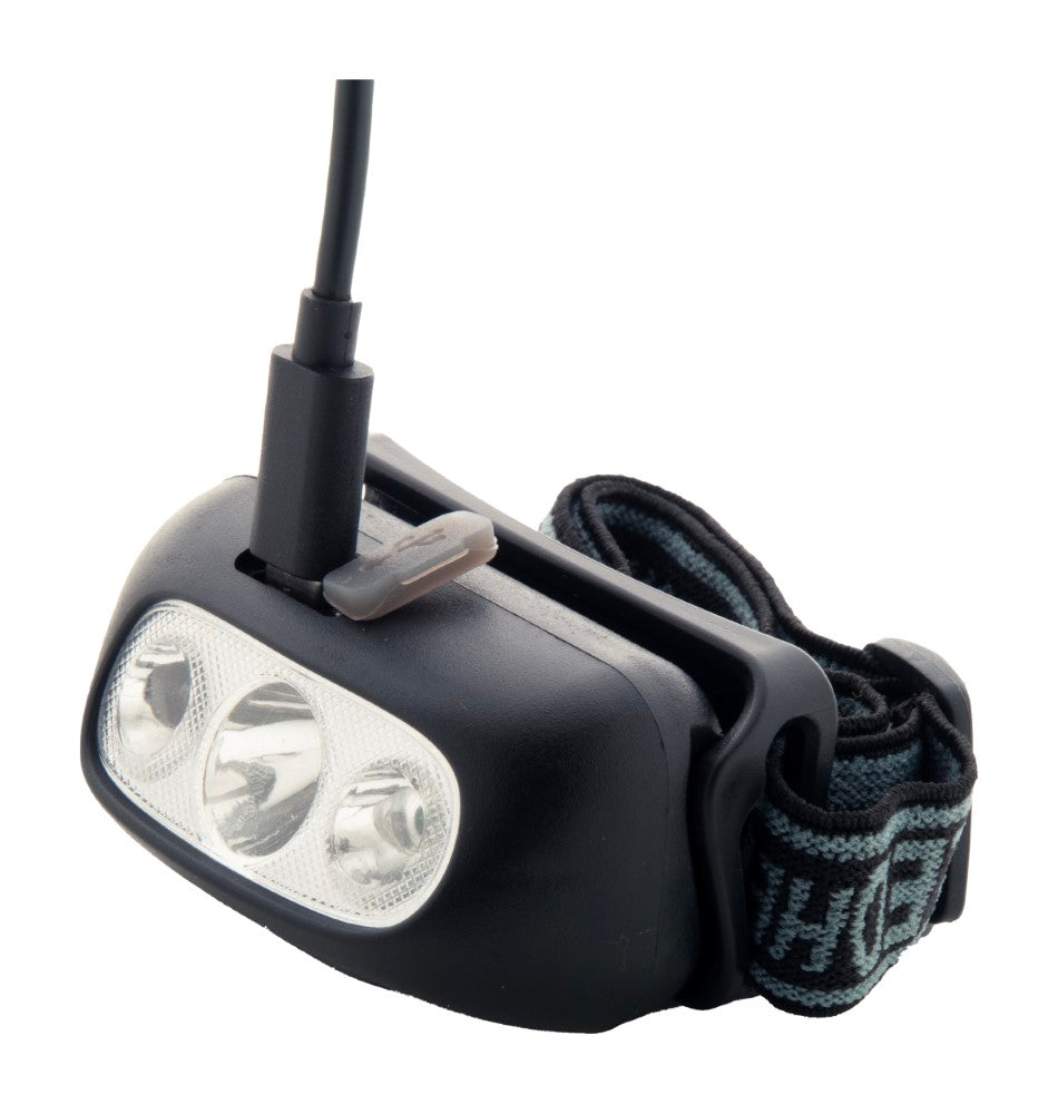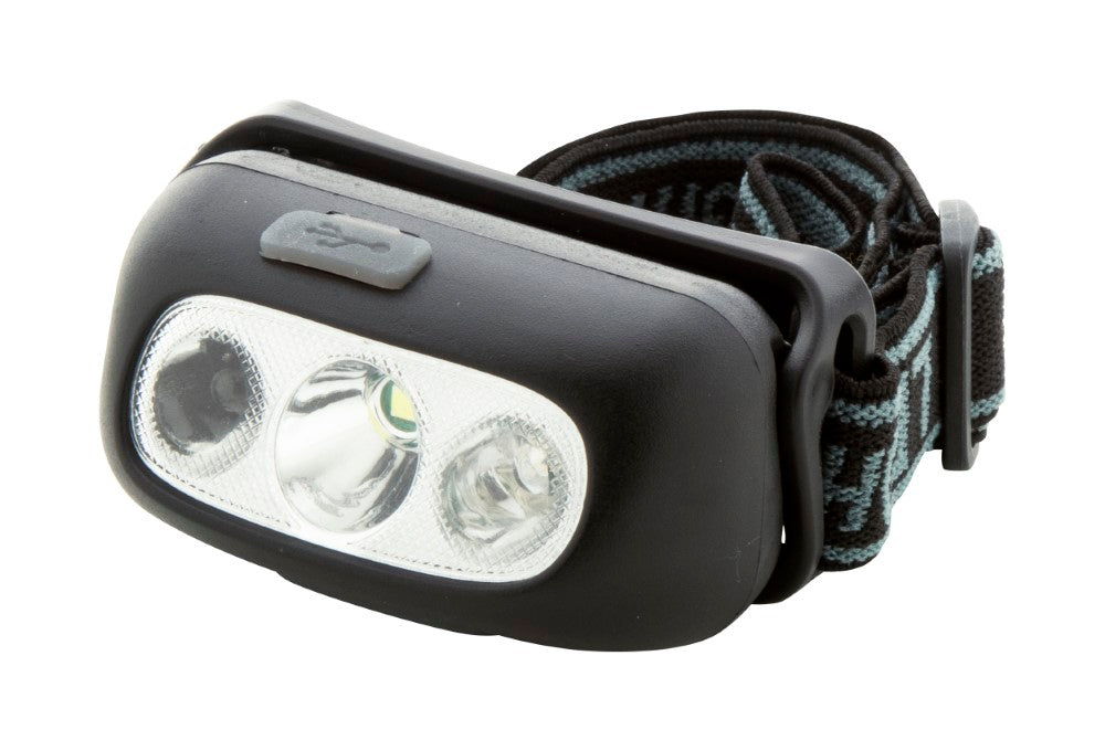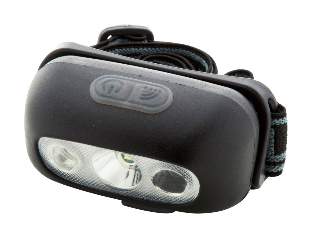 Naglavna svetilka, s senzorji, ohišje črna plastika, močna COB svetilnost, USB kabel priložen, baterija (400mAh), darilna škatla 69x35x37mm