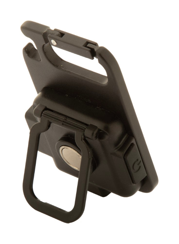 Večnamenska svetilka na stojalu, aluminij, baterija (400mAh) za ponovno polnjenje, USB kabel priložen, možnost uravnavanja jakosti COB svetlobe in utripanje, stojalo, karabin in magnet, 45x71x20mm, kartonska škatla