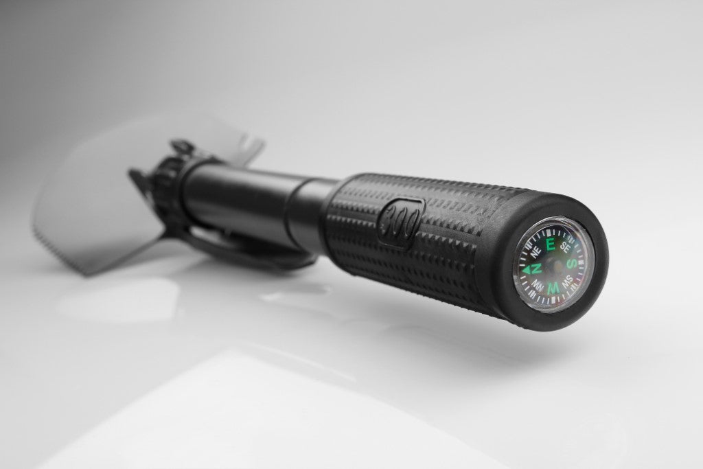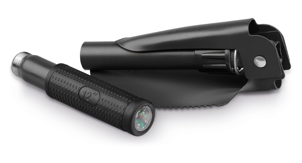 Kovinska zložljiva lopata v torbici, z gumiranim ročem in kompasom, 100x420mm