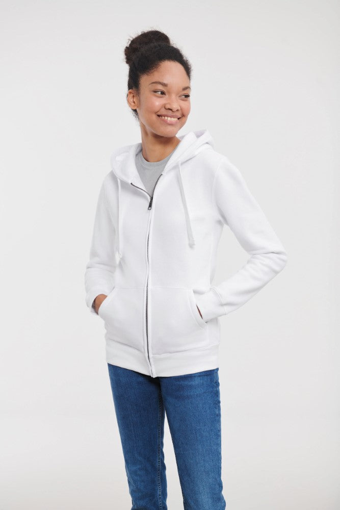 Ženska jopica s kapuco (hoodie) in zadrgo (YKK), odlična kvaliteta, 80% česan bombaž in 20% poliester, 280g/m2, vrvice v barvi puloverja, 2 stranska žepa, teliran