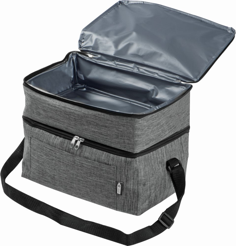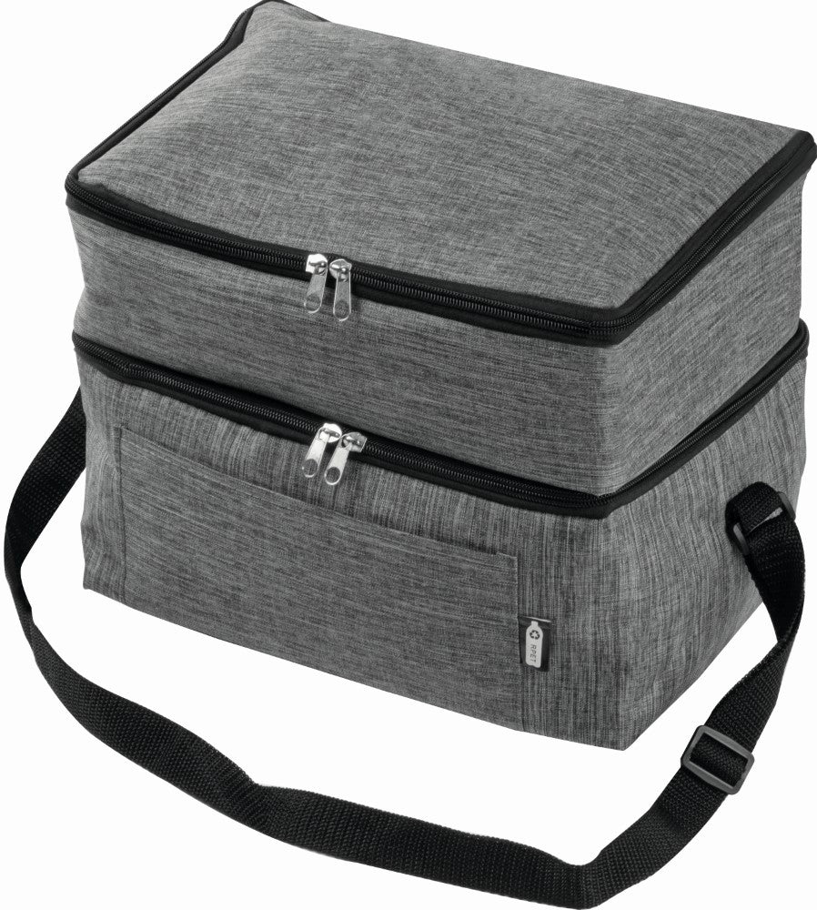 Hladilna torba 14L, dva predela z zadrgo, RPET poliester 600D melirane sive barve, z dodatnim žepom, ramenski trak, 32x23x20cm