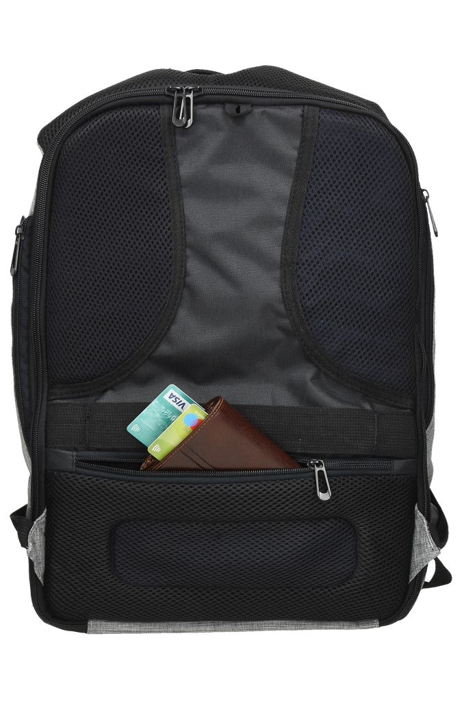 Nahrbtnik, tudi za prenosnik, z USB polnilcem, štirje podloženi predeli z zadrgo z več manjšimi žepi, dodaten žep spredaj, hrbet in naramnici oblazinjeni, brez vsebine, 350x450x170mm