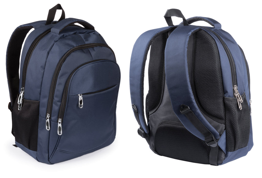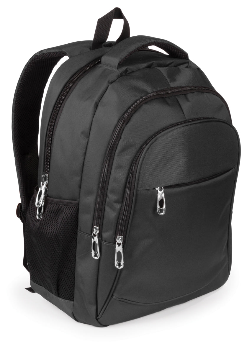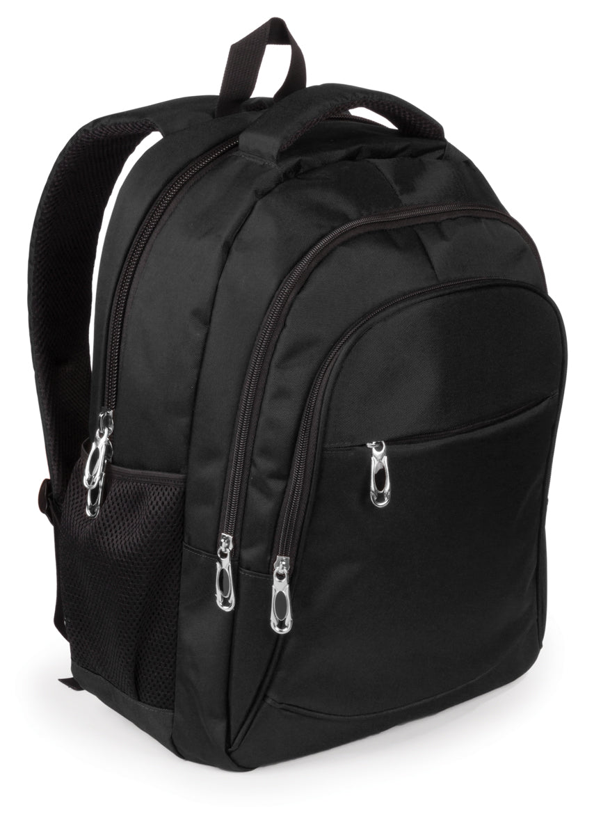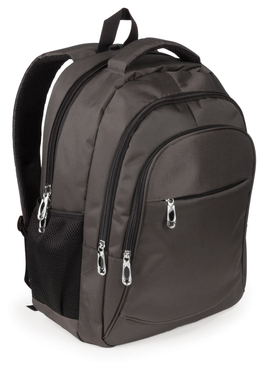 Nahrbtnik z veliko predeli z zadrgo in oblazinjen žep za prenosnik (15"), z dvema stranskima žepoma, podložene naramnice in hrbtišče, 600D poliester, 32,5x44x25cm, PU vrečka