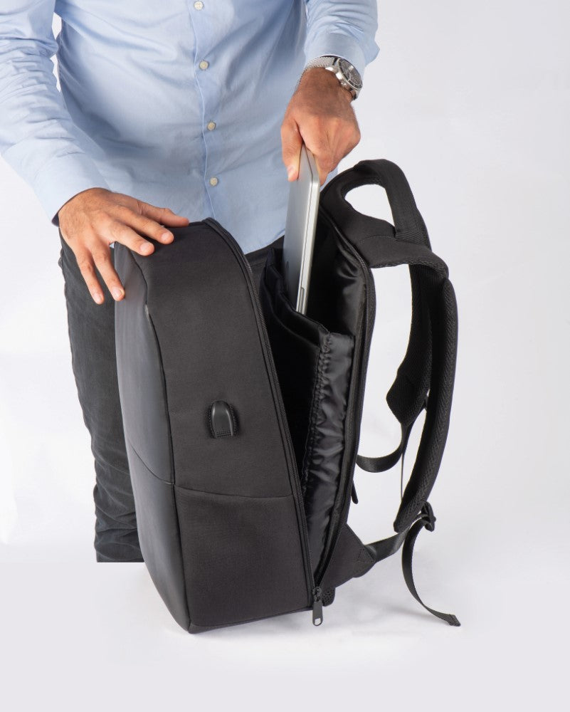 Nahrbtnik vodoodporen, Hi-Qu, 65% nylon in 35% poliuretan, USB priključek, podložene - zračne naramnice in hrbtišče, s trakom za voziček, poseben predel za prenosnik, (15")¸ skrivni žep in veliko predelov in žepkov, 31x16x45cm