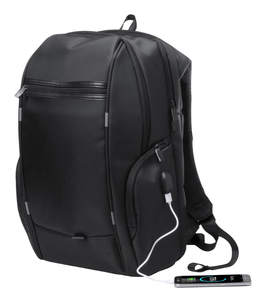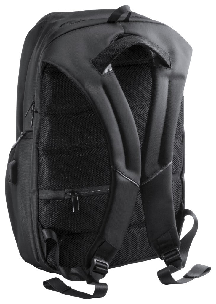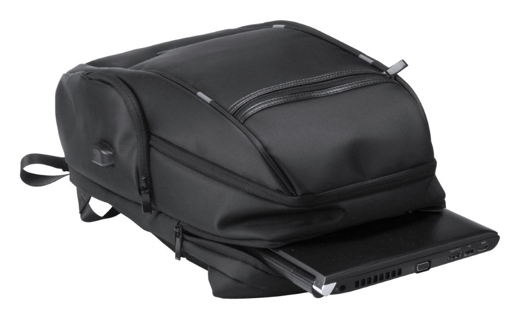 Večnamenski nahrbtnik, nylon, več žepov ob strani in skrivni žep, podložene - zračne naramnice in hrbtišče, poseben predel za prenosnik (15") z USB konektorjem, veliko predelov in žepkov, 30x20x47cm