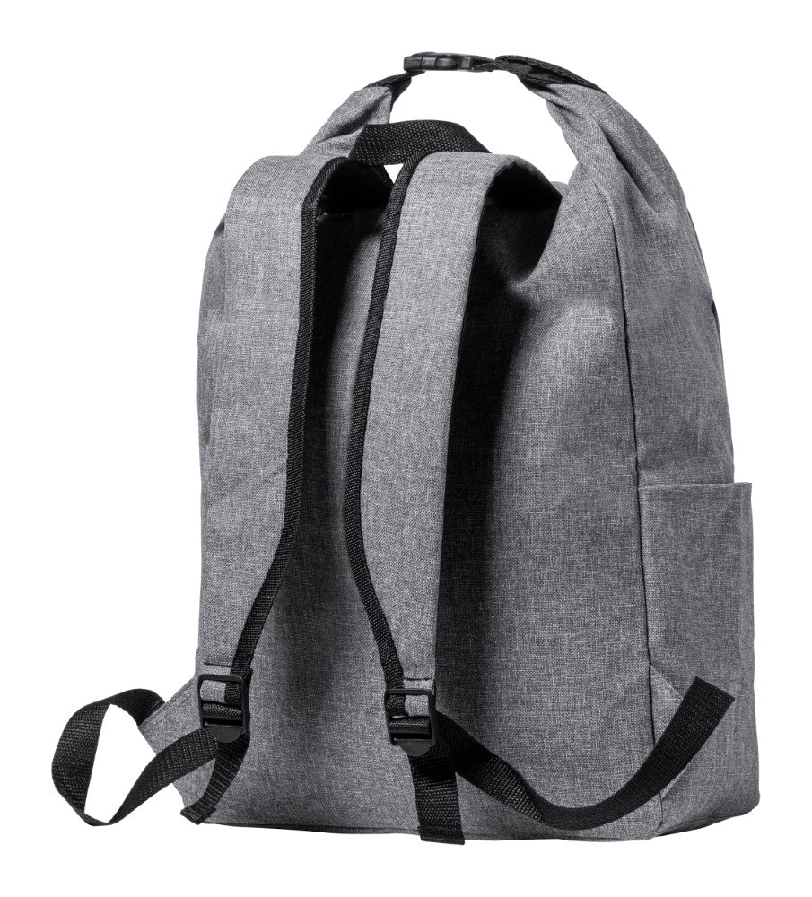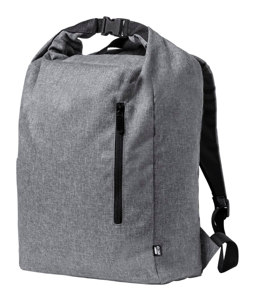 Nepremočljiv nahrbtnik, zapiranje z zavihkom, zunanji žep z zadrgo, podložene naramnice, 300D RPET poliester, 31,5x39x24,5cm