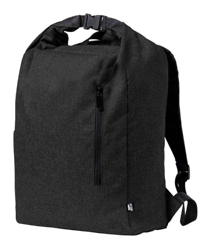 Nepremočljiv nahrbtnik, zapiranje z zavihkom, zunanji žep z zadrgo, podložene naramnice, 300D RPET poliester, 31,5x39x24,5cm