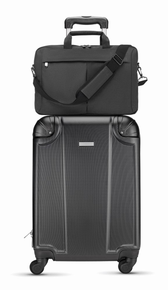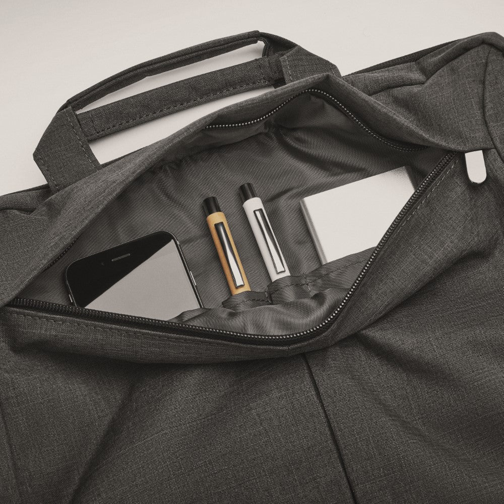 Poslovna torba, temno siva, oblaznjena, za 15" prenosnik, več predelov in žepov, oblazinjen trak za nošenje in trak za obešanje na voziček, poliester 360D, 40x28x7cm