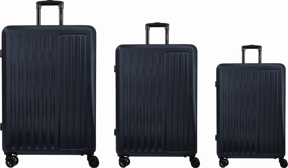 Set treh kovčkov na kolesih "Pierre Cardin", vrtljivi-močni in odporni koleščki, najmanjši kovček je tudi za potniško kabino letala, vzdržljiv ABS material, mere kovčkov: 34x23x55cm, 44x27x65cm, 50x29x75cm