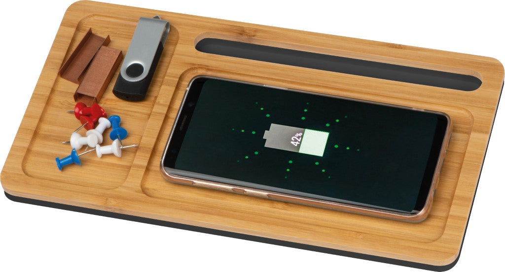 Bambus brezžični polnilec - namizno stojalo, priložen USB kabel za polnjenje, 255x135x18mm, kartonska škatla