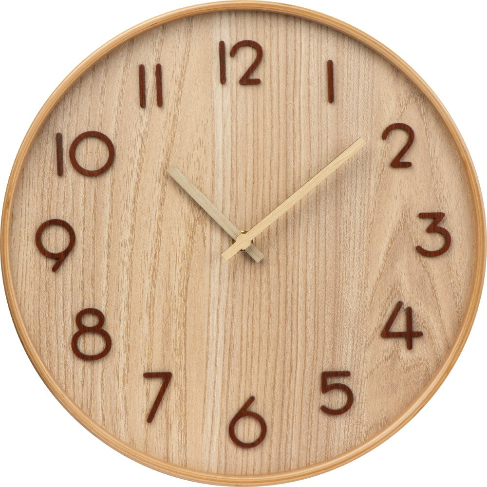 Stenska ura les, z lesenimi kazalci in številkami, možen potisk ali gravura, baterija ni priložena, Ø315x30mm, kartonska škatla