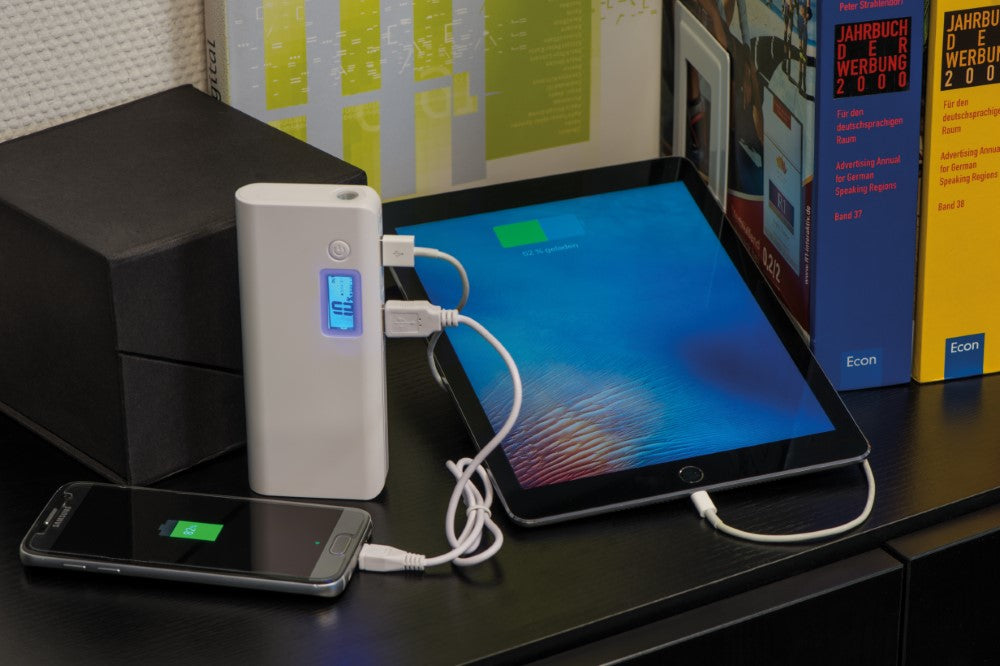USB Power bank polnilec, 10.000mAh, digitalni prikazovalnik delovanja, hitro polnjenje, USB kabel, LED svetilka , ABS plastika, 140x62x22mm, kartonska škatla