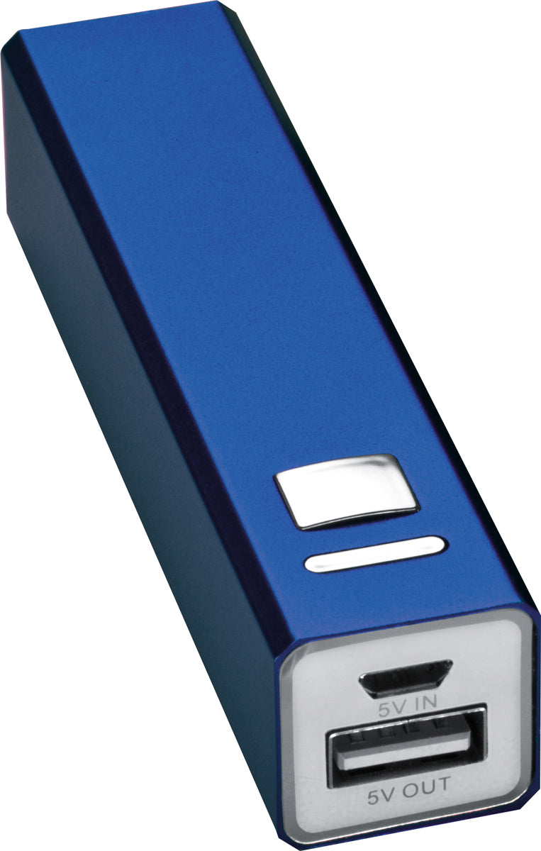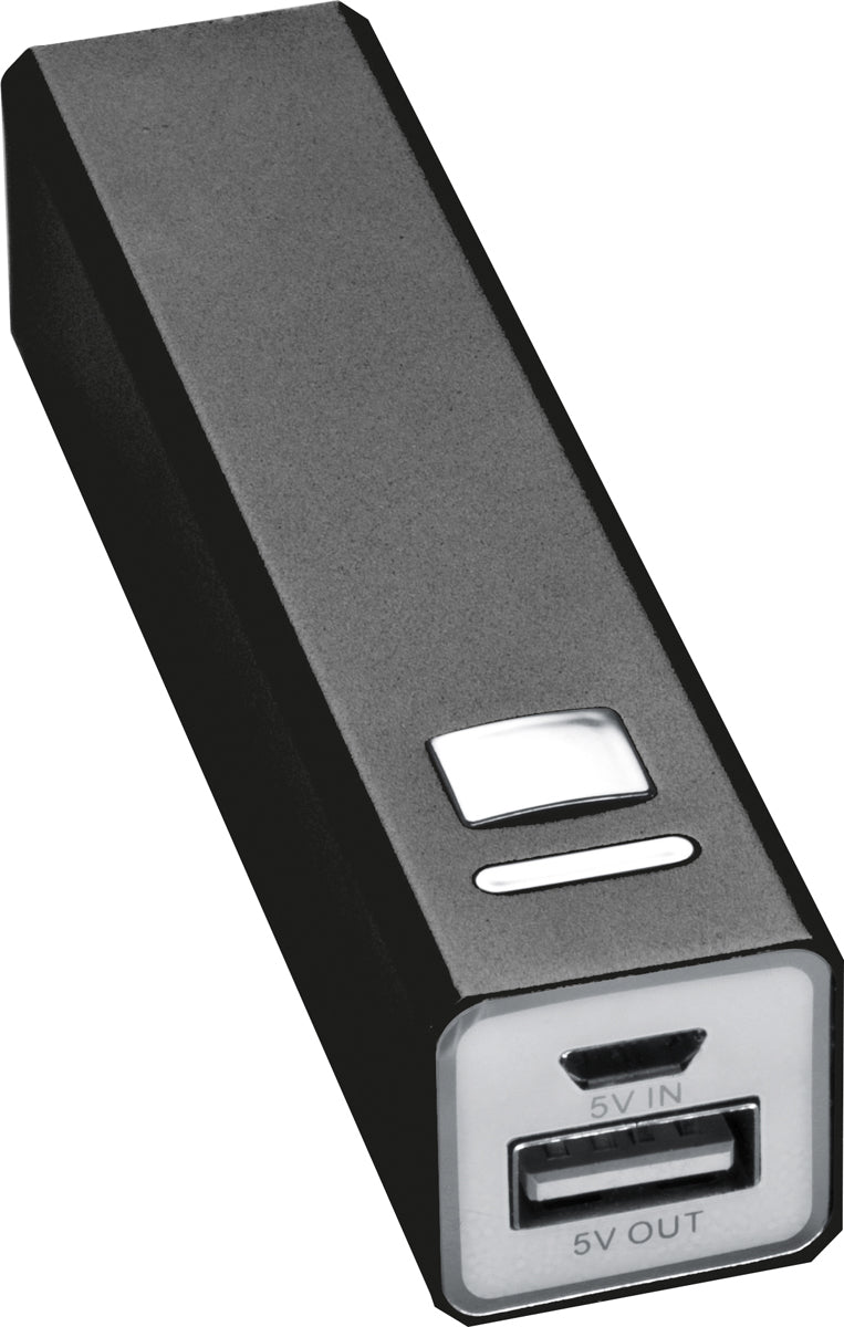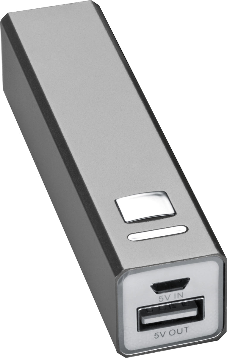 USB Power bank polnilec, aluminij, priložen mikro USB kabel, moč baterije 2200mAh, 22x22x94mm, kartonska škatlica