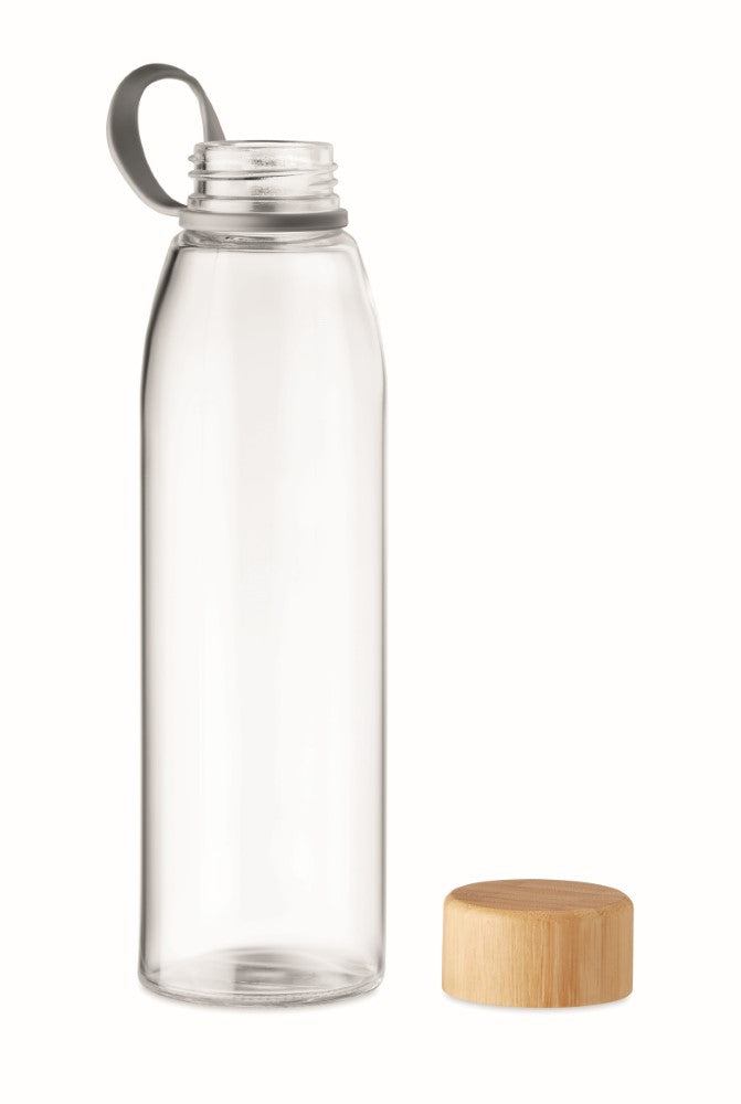 Borosilikatna steklenica - 500ml, vodotesna, z bambus pokrovom, Ø60x225mm, kartonska škatla