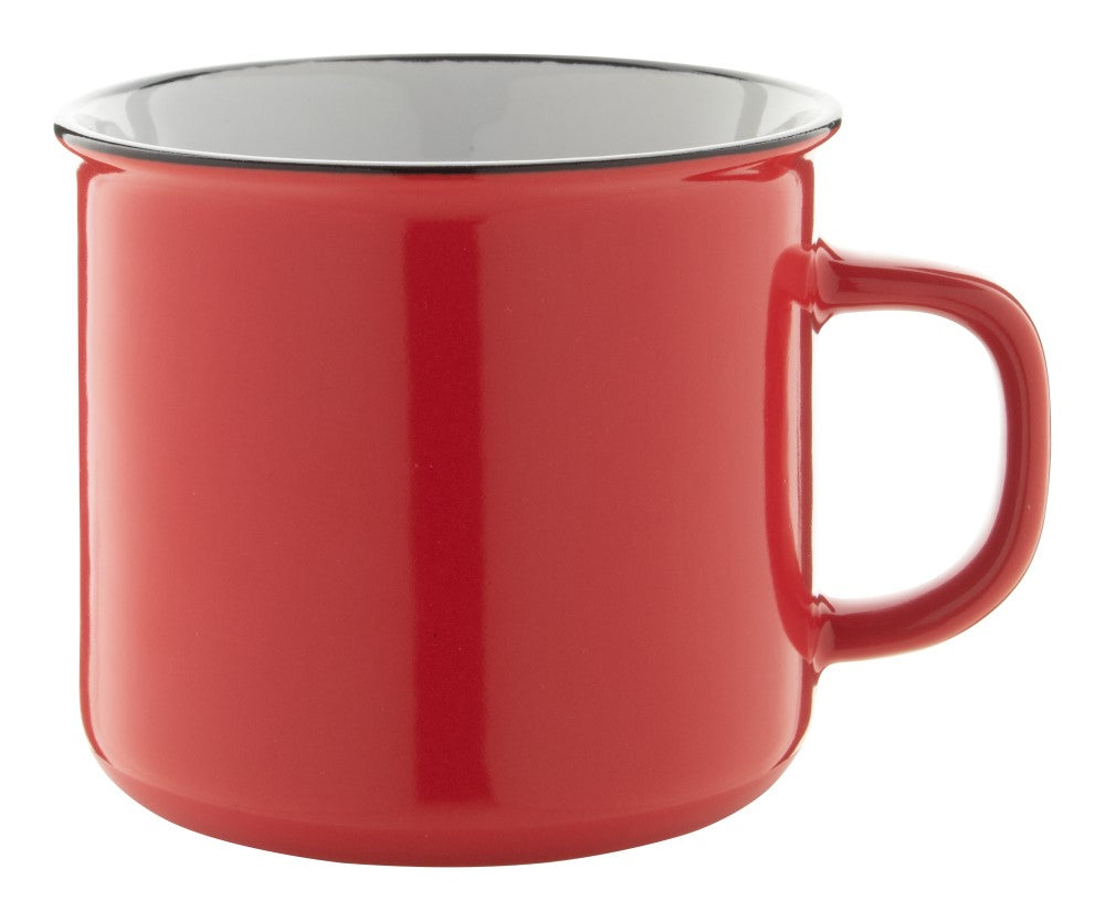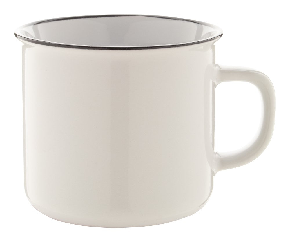 Lonček, keramika - 300ml, s črnim robom, zunanja stran v barvi, Ø90x82mm, bela kartonska škatla