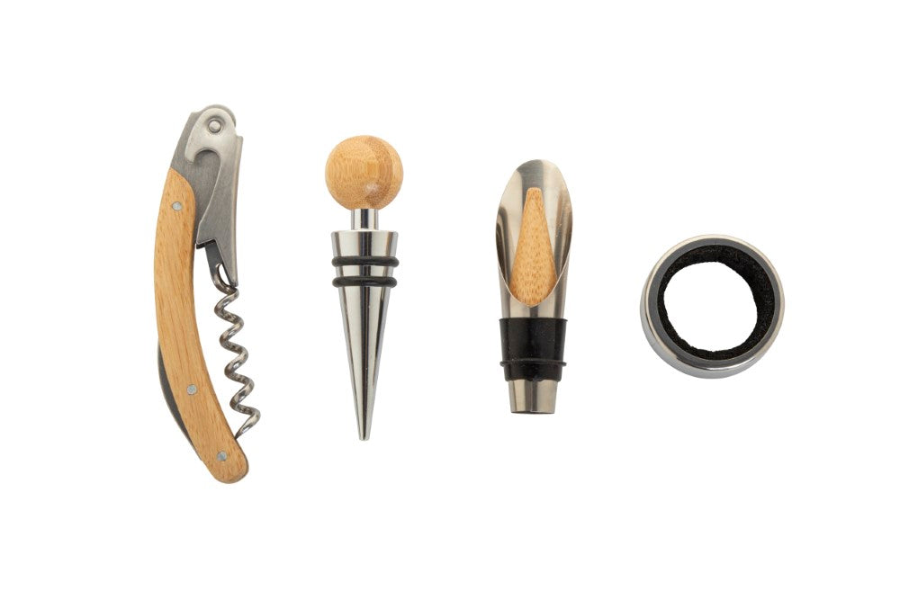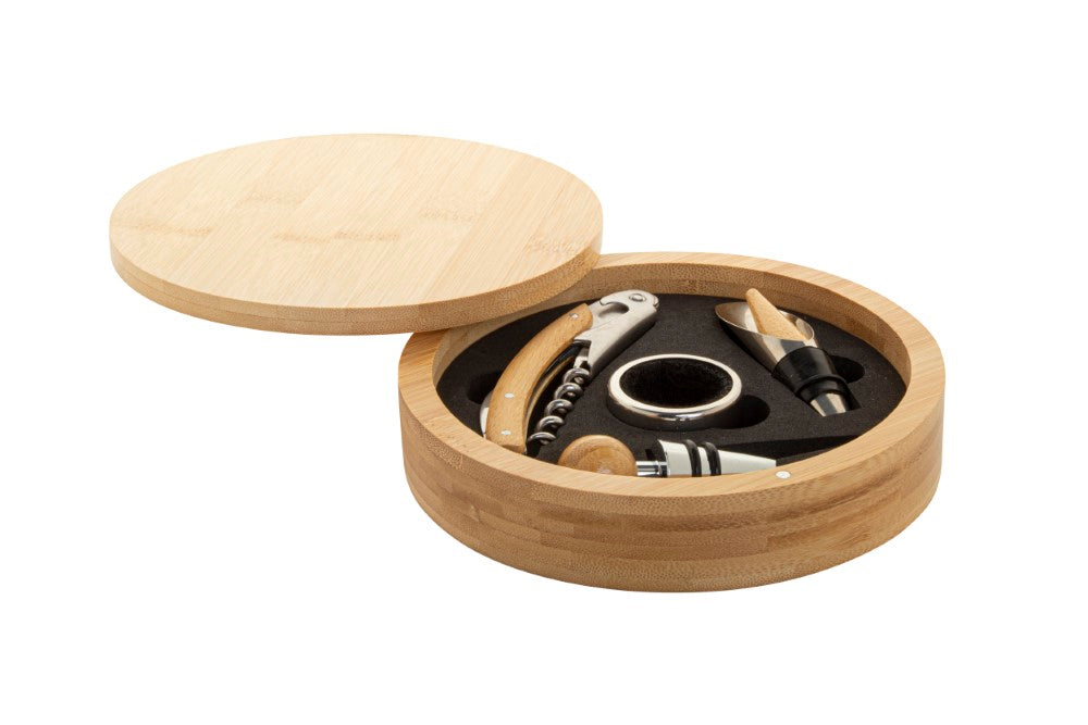 Set za vino, štiridelni, v okrogli bambus škatli: Ø160x40mm, kartonska škatla