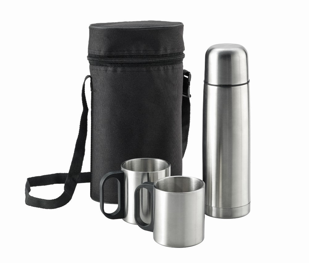 Termo posda 500ml in dva lončka po 200ml, vse nerjaveče jeklo in vakum dvojne stene, torba črn poliester-600D, 155x250x90 mm