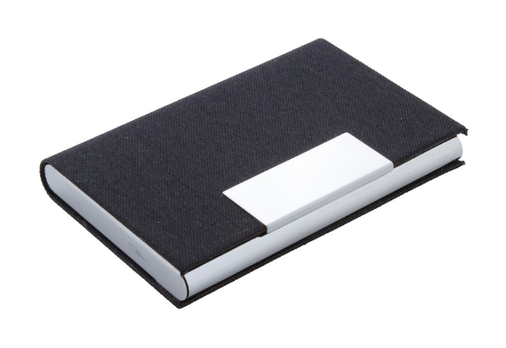 Etui za kartice/vizitke, kromirana kovina, delno prekrit z recikliranim RPET poliestrom, možnost gravure, 95x64x13mm