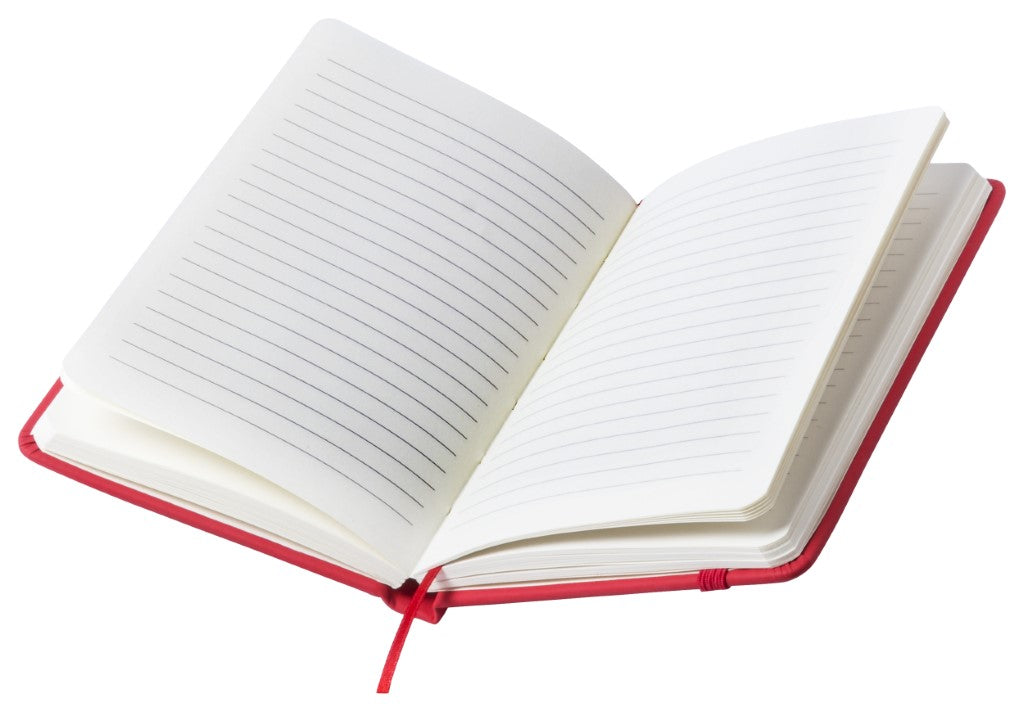 Mali notesnik A6, 100 listni s črtami, trde platnice prekrite z umetnim usnjem, 95x145x15mm