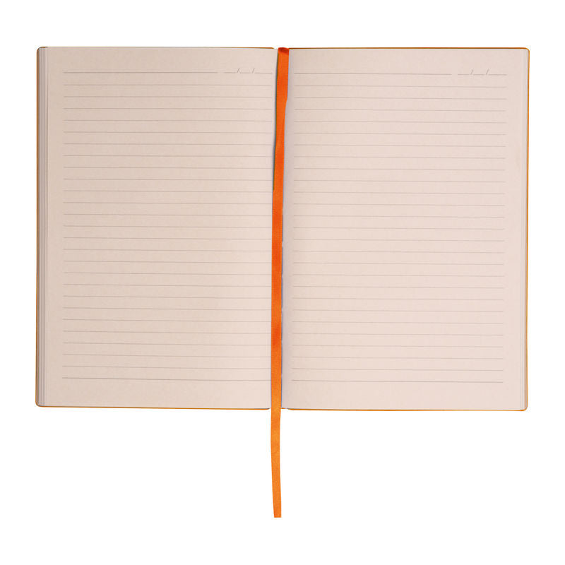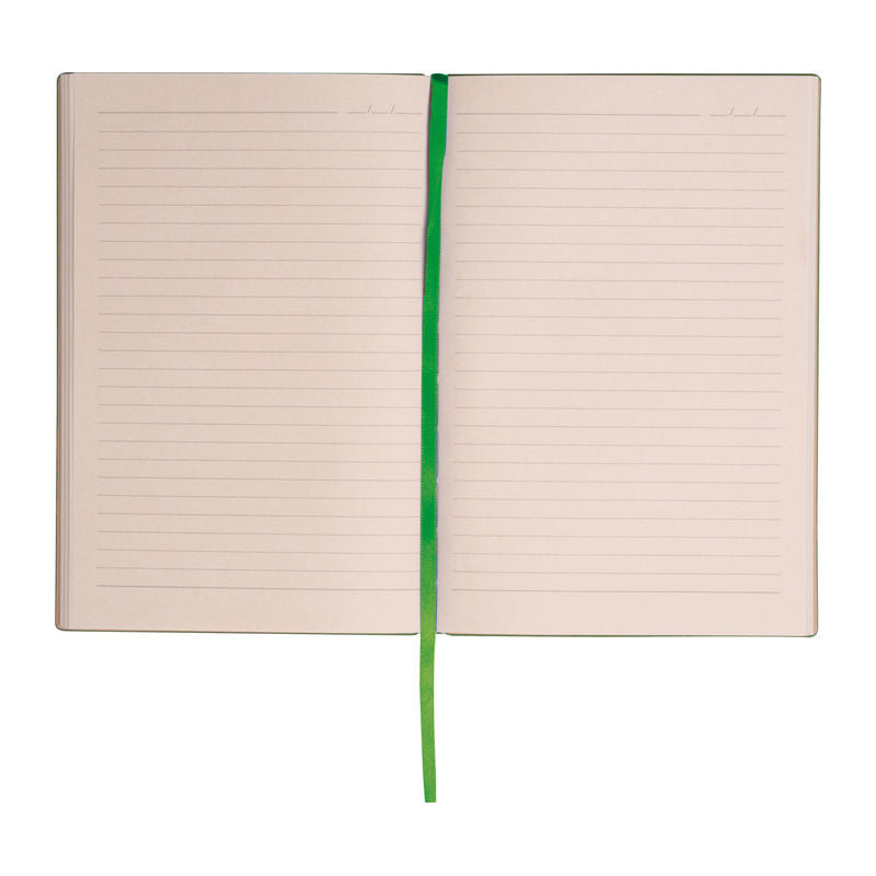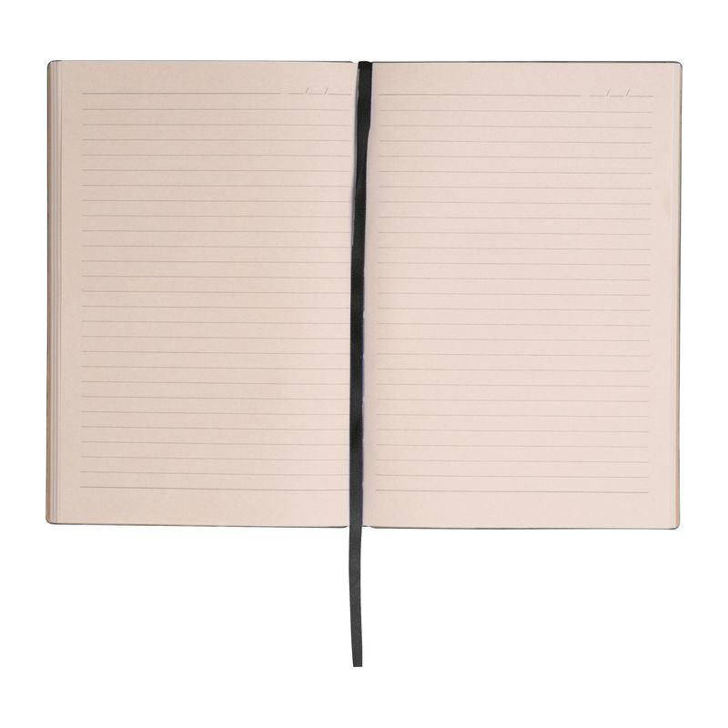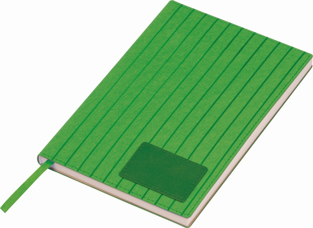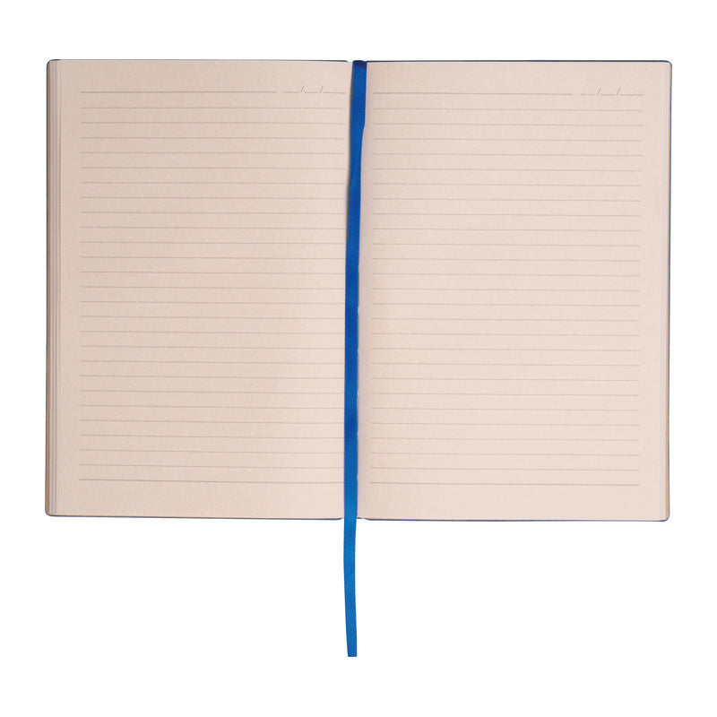 Notesnik A5, s črtami, 96 listni papir iz listov sladkornega trsa, mehke-upogljive PU plastične platnice s šivano obrobo, kartonski ovitek,143x210x12mm