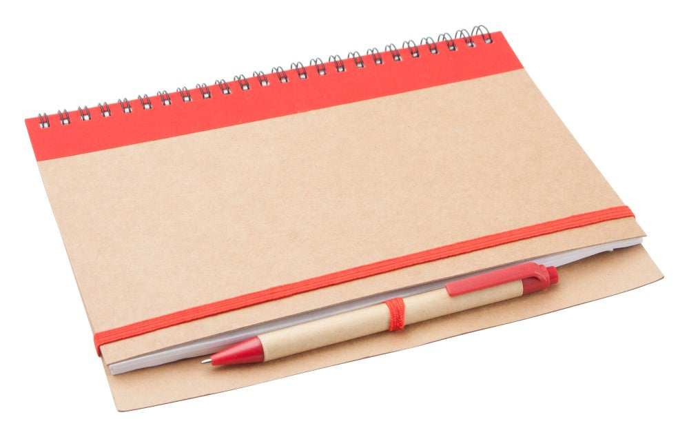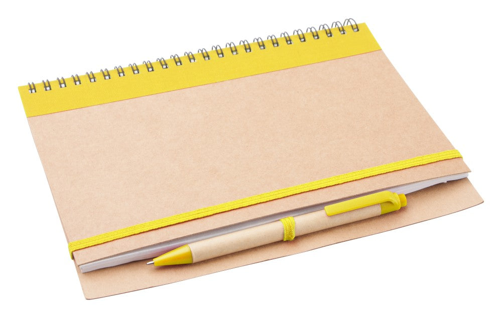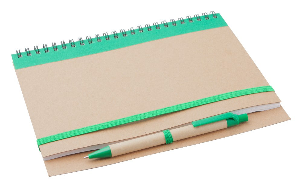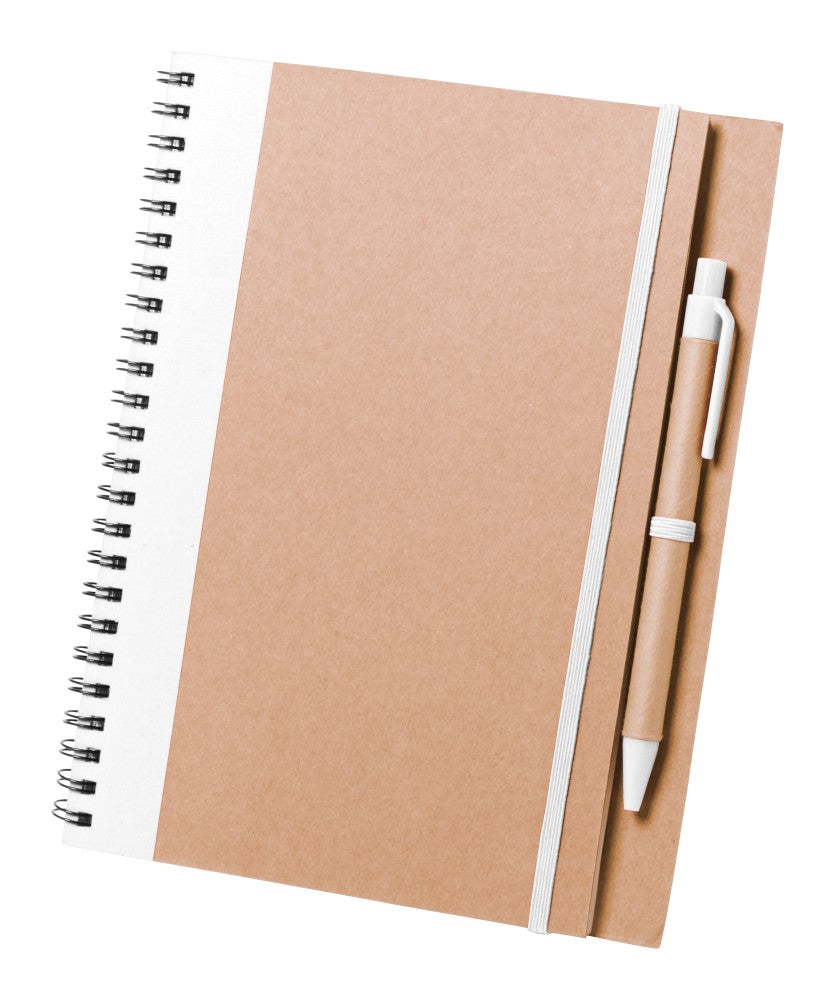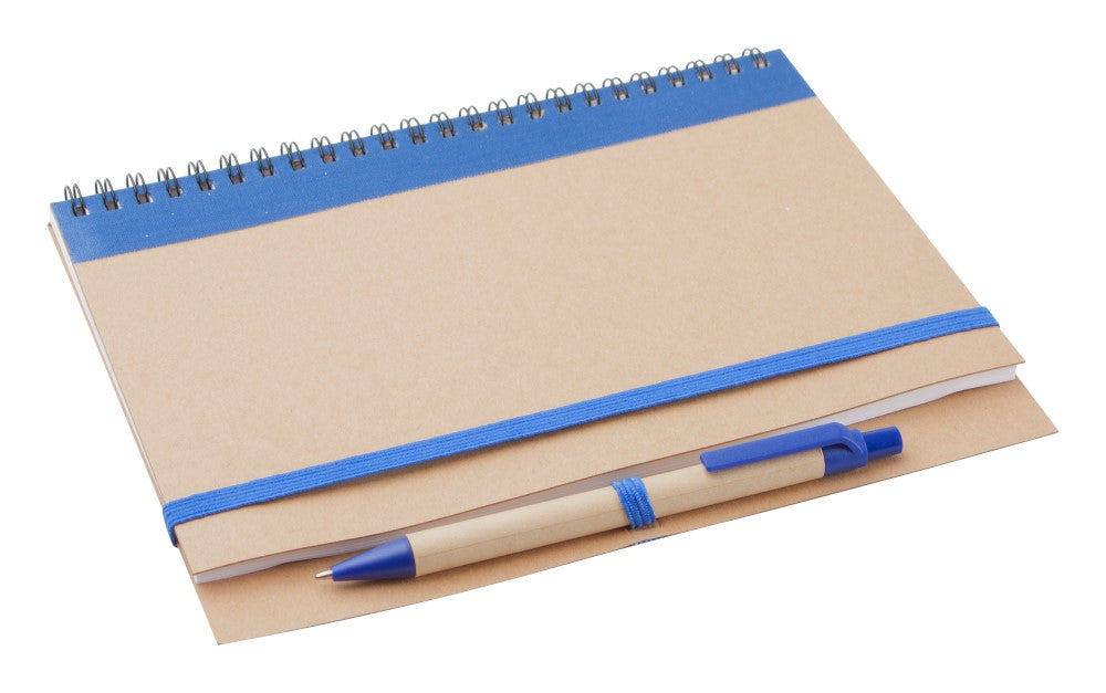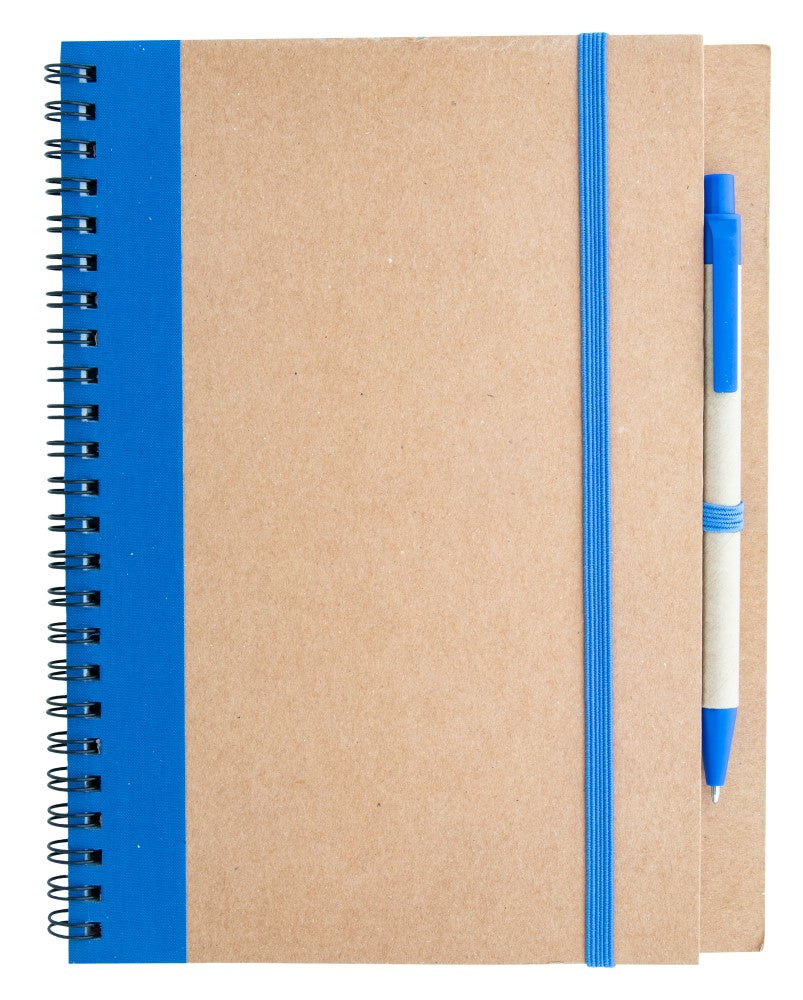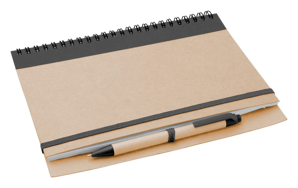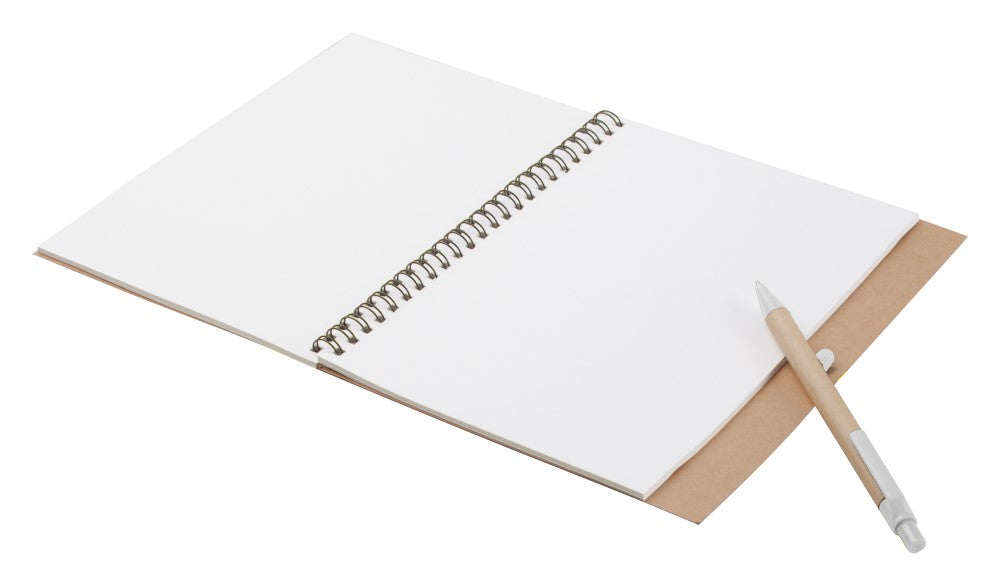 Notesnik A5, s špiralo, 60 listov brez črt, platnice in kemični svinčnik recikliran karton, 165x210x10mm