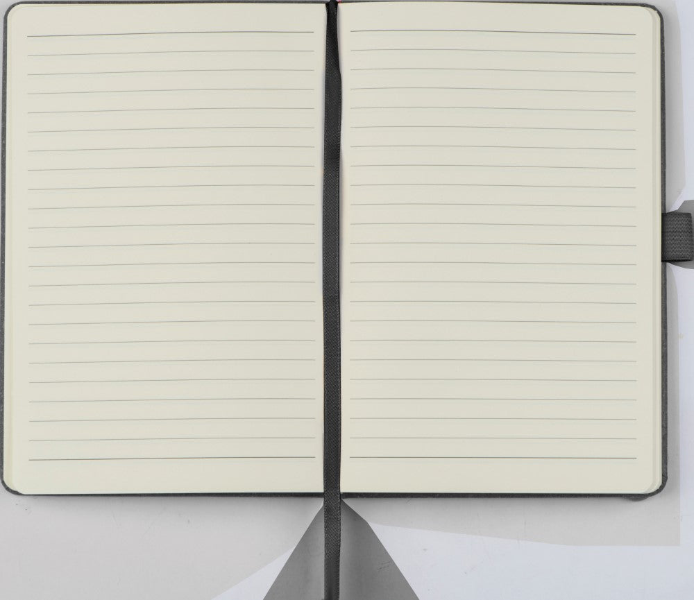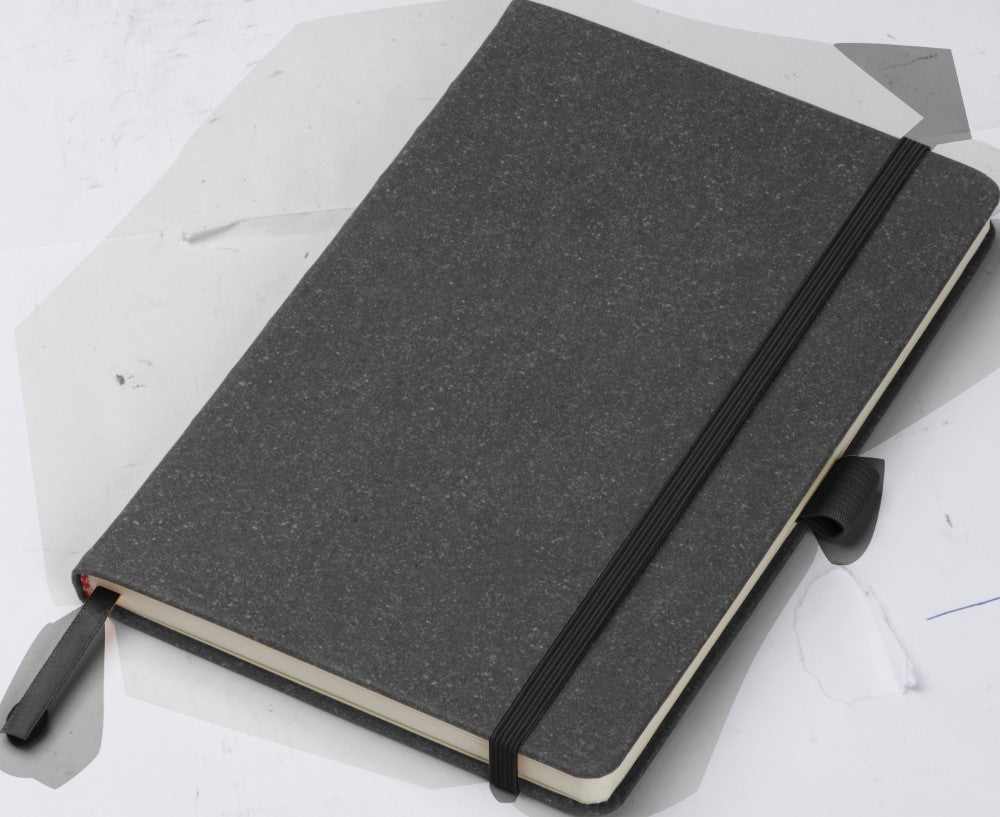 Notesnik A5, s črtami, reciklirano usnje, 80 listni, označevalec strani, kartonski ovitek, 210x140x16mm