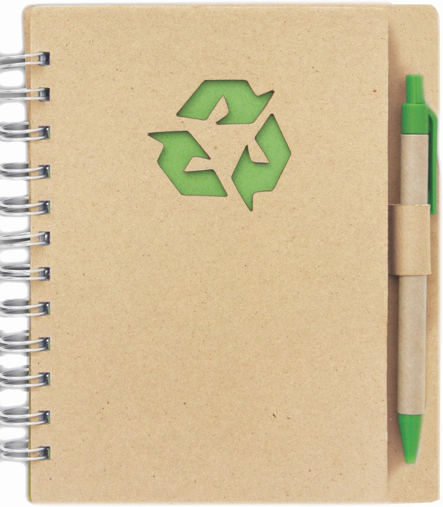 Špiralna beležka-notesnik B6 s črtami, 80 listni, kemični svinčnik, recikliran papir in karton, 140x177x15mm