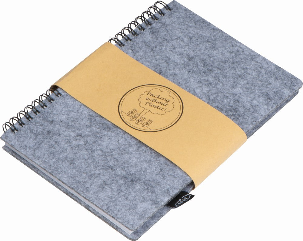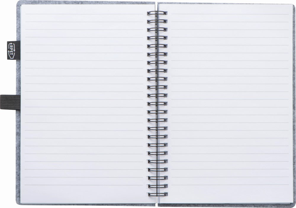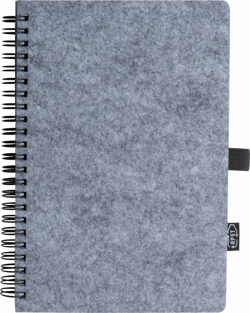 Špiralna beležka-notesnik A5, s črtami, 80 listni recikliran papir, platnice-RPET siv recikliran filc, 153x212x8mm