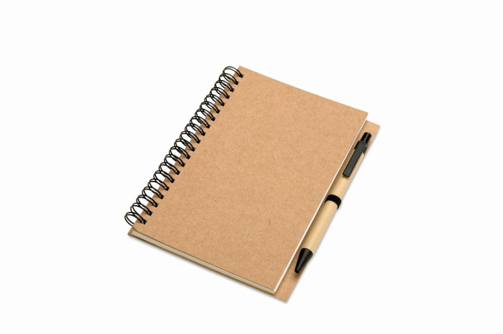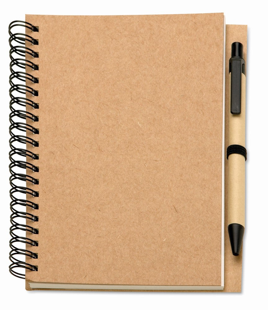 Špiralna beležka-notesnik B6, brez črt, 70 listni, kemični svinčnik, recikliran papir in karton, 180x130x8mm