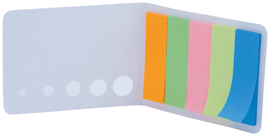 Ovitek s samolepljivimi lističi, 100 lističev v 5-ih barvah, 83x55x3mm, PU vrečka