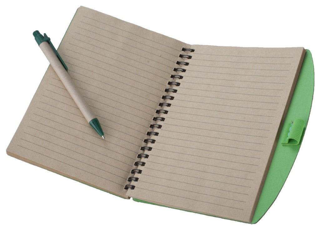 Špiralna beležka-notesnik B6, s črtami, 80 listni, kemični svinčnik, vse recikliran papir, 150x180x16mm