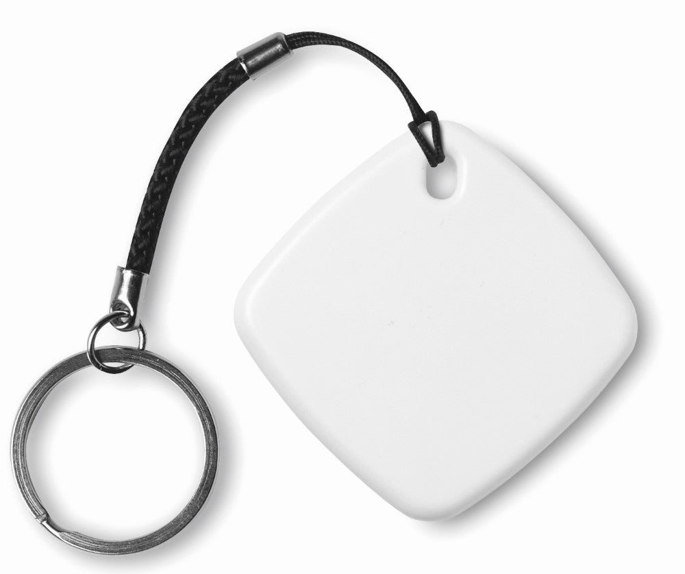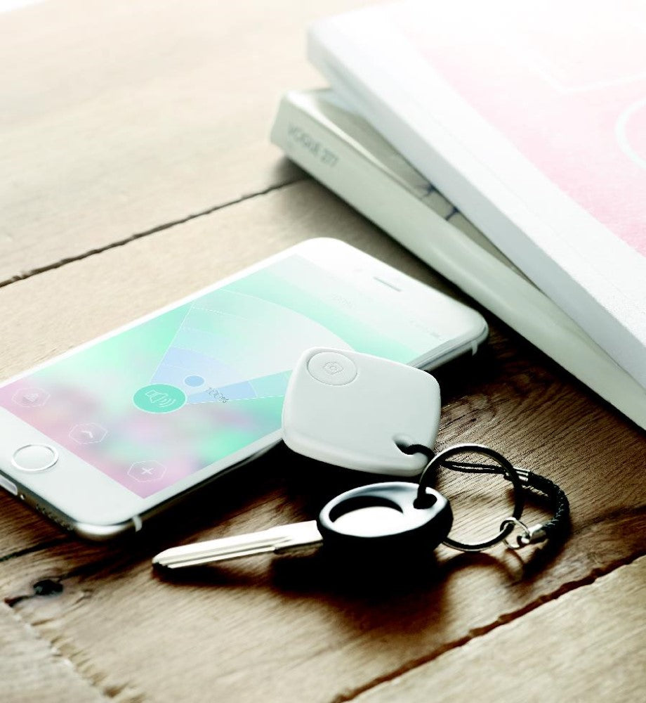 Brezžična naprava proti izgubi/iskalec ključev, ABS plastika 38x38x7mm. Zahteva brezplačno aplikacijo, ki je na voljo tako za iOS kot za Android. Napravo pritrdite na torbo, ključe ali prtljago in kadar bodo vaši predmeti izgubljeni, vam jih bo naprava pomagala najti. Dodatne funkcije tega izdelka so daljinski sprožilec/gumb za selfije in funkcija iskanja telefona. Vključena baterija . Razdalja delovanja: 35 m zunaj/15 m znotraj.