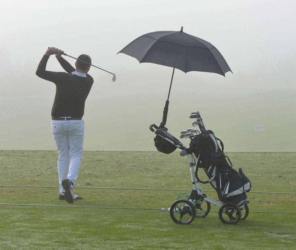 Golf dežnik-avtomatičen, primeren za vetrovno vreme in golf voziček, mehko ravno držalo, ogrodje iz karbonskih vlaken, črn 190Tpongee-poliester, Ø133cm