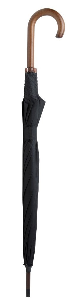 Avtomatičen dežnik, lesena - kljuka, palica in konice, ogrodje: karbon in kovina, 190T črn RPET poliester-pongee, Ø105cm