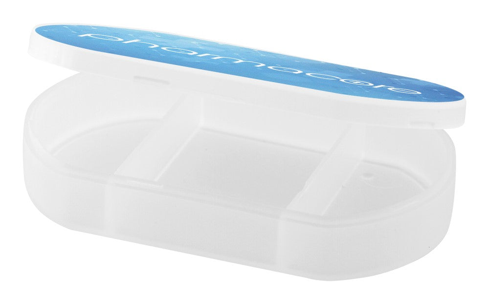 Škatlica za tablete, s tremi predeli, plastika, 60x36x12mm